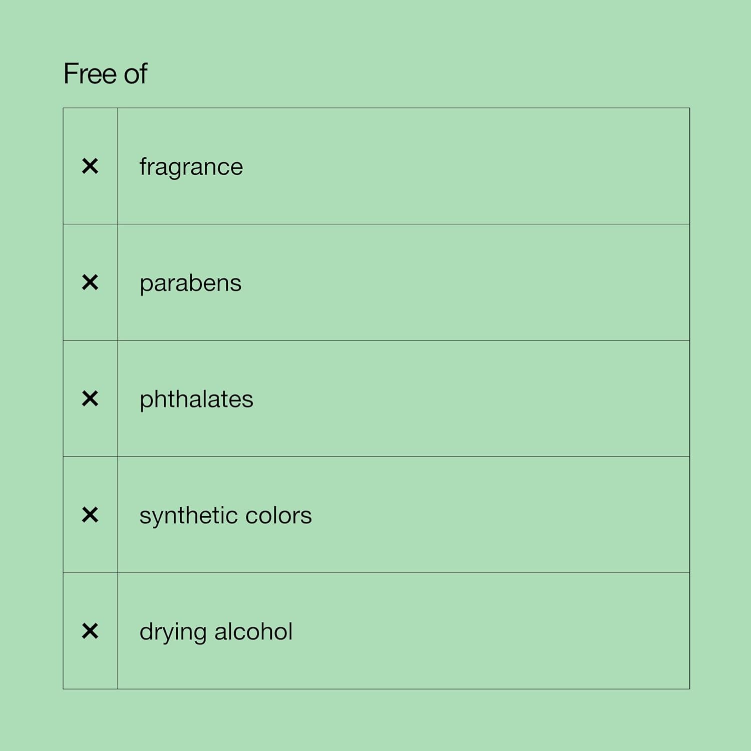| Fragrance Free | ✔ | ✔ | ✔ | ✔ | ✔ | ✔ |