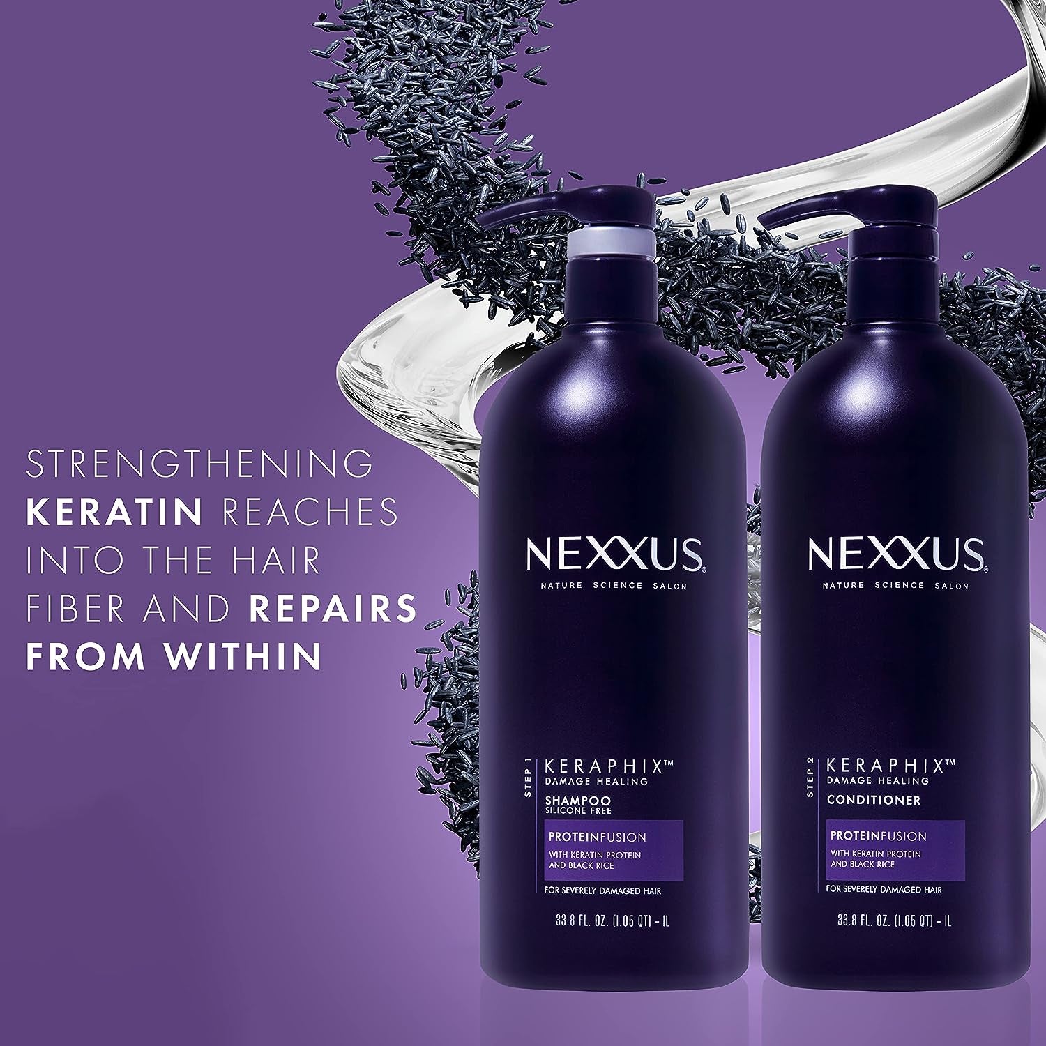 - KERATIN TREATMENT INFUSED WITH PROTEINFUSION: Inspired by Nexxus New York City salon, Nexxus shampoo with Keratin Protein and Black Rice is your new weapon to heal signs of damaged hair
